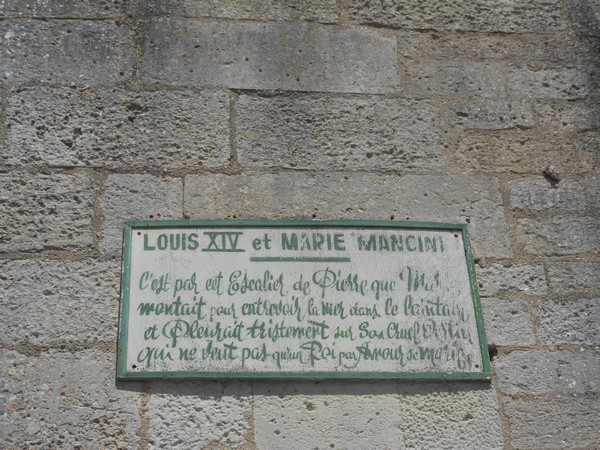 Lors de votre balade dans Brouage, vous trouverez des panneaux informatifs parsemés ça et là. L’un deux a attiré mon attention. Il se trouve près de l’escalier qui mène aux remparts, près des boutiques. Il y est écrit : « C’est par cet escalier de pierre que Marie montait pour entrevoir la mer dans le lointain et pleurait tristement sur son cruel destin qui ne veut pas qu’un Roi par amour se marie ».