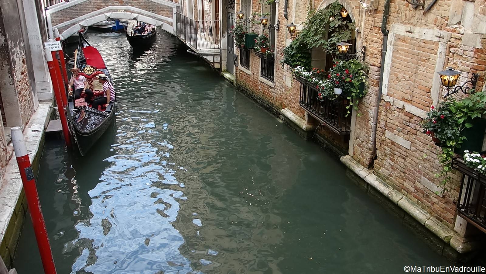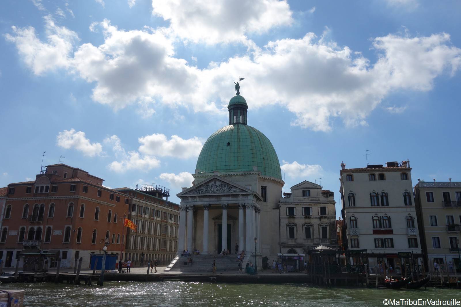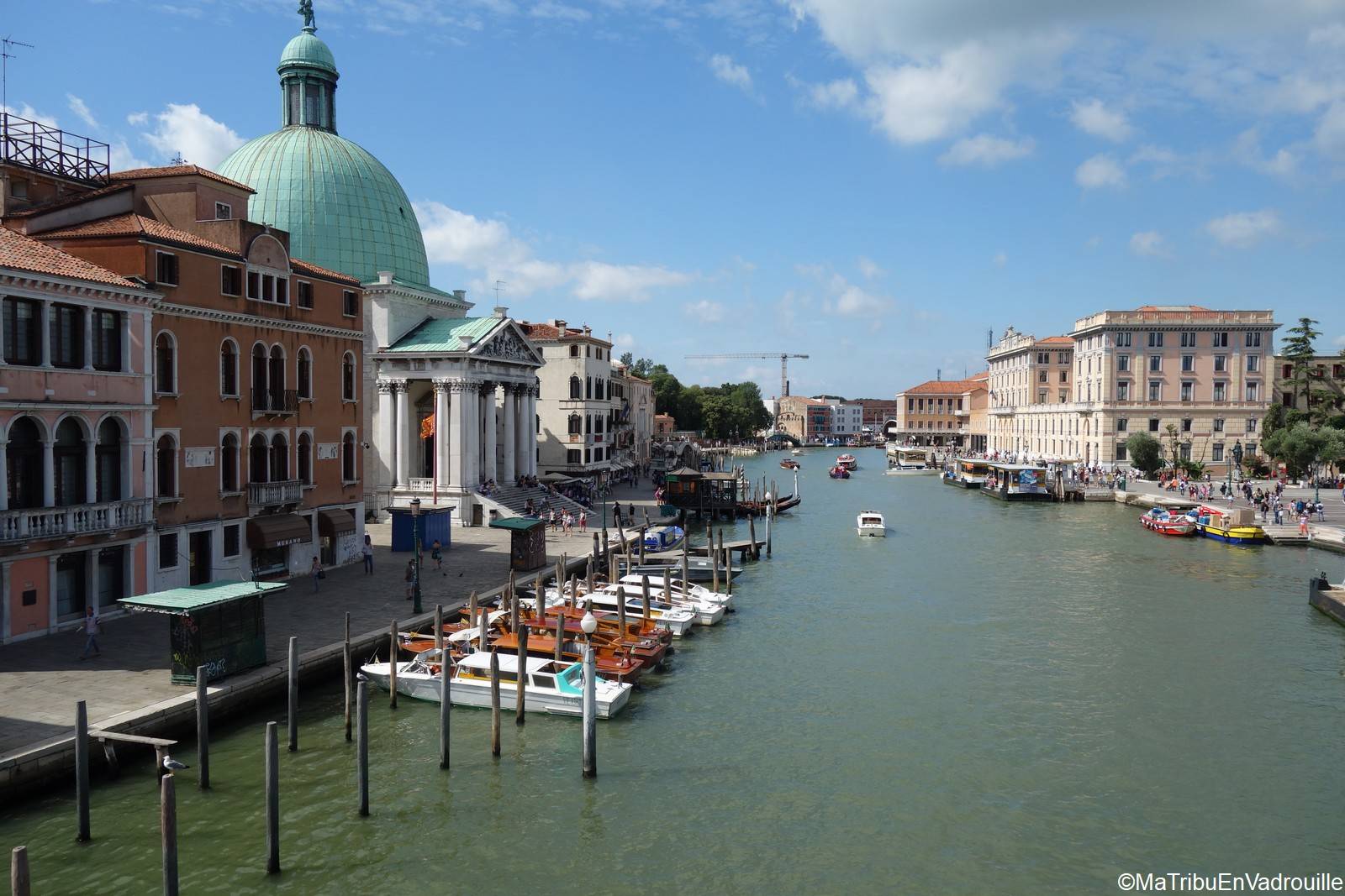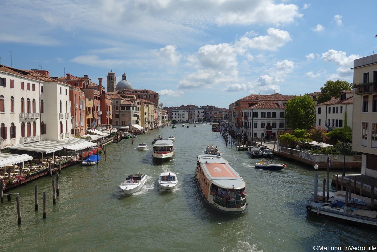 C’est donc par le train que nous arrivons dans la Cité des Doges. Après avoir passé le pont qui relie Venise au continent, nous sortons du train climatisé, au milieu de la foule. Nous sommes en plein mois de juillet, il fait très chaud et bien sûr, nous nous retrouvons au milieu de nombreux touristes. Mais dès que l’on se retrouve sur le parvis de la gare… la beauté des lieux est tellement saisissante que l’on oublie que nous ne sommes pas seuls ! Même les enfants sont impressionnés ! Les monuments, la mer, les gondoles, les ponts, les bateaux… il y a tellement à voir que nous passons notre temps à prendre des photos et à filmer. Sauf que… justement, le temps nous est compté !