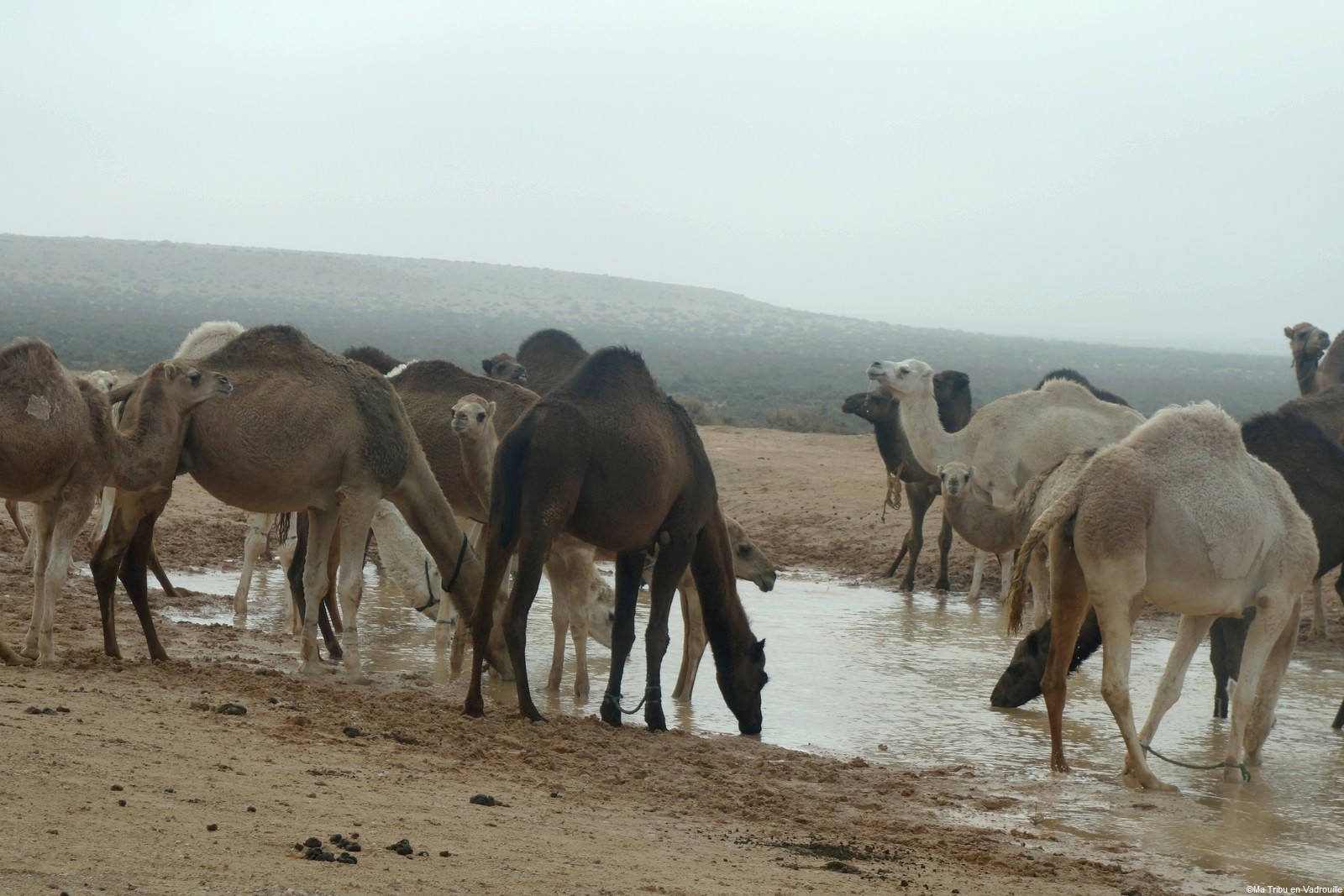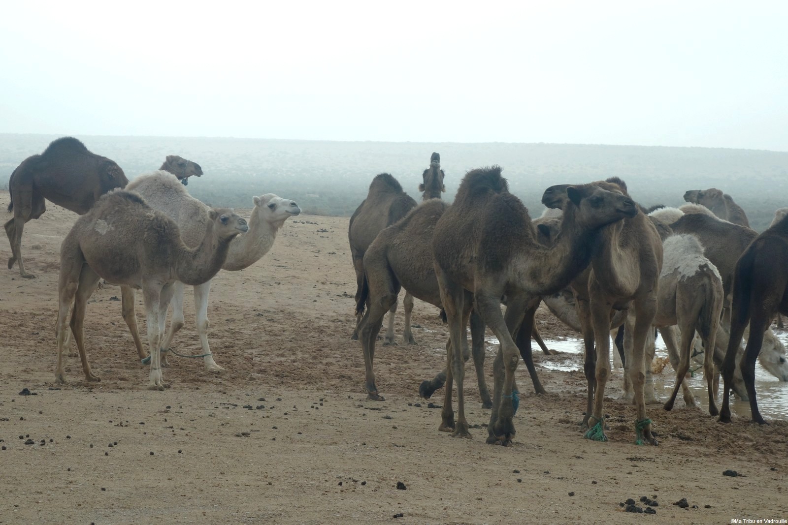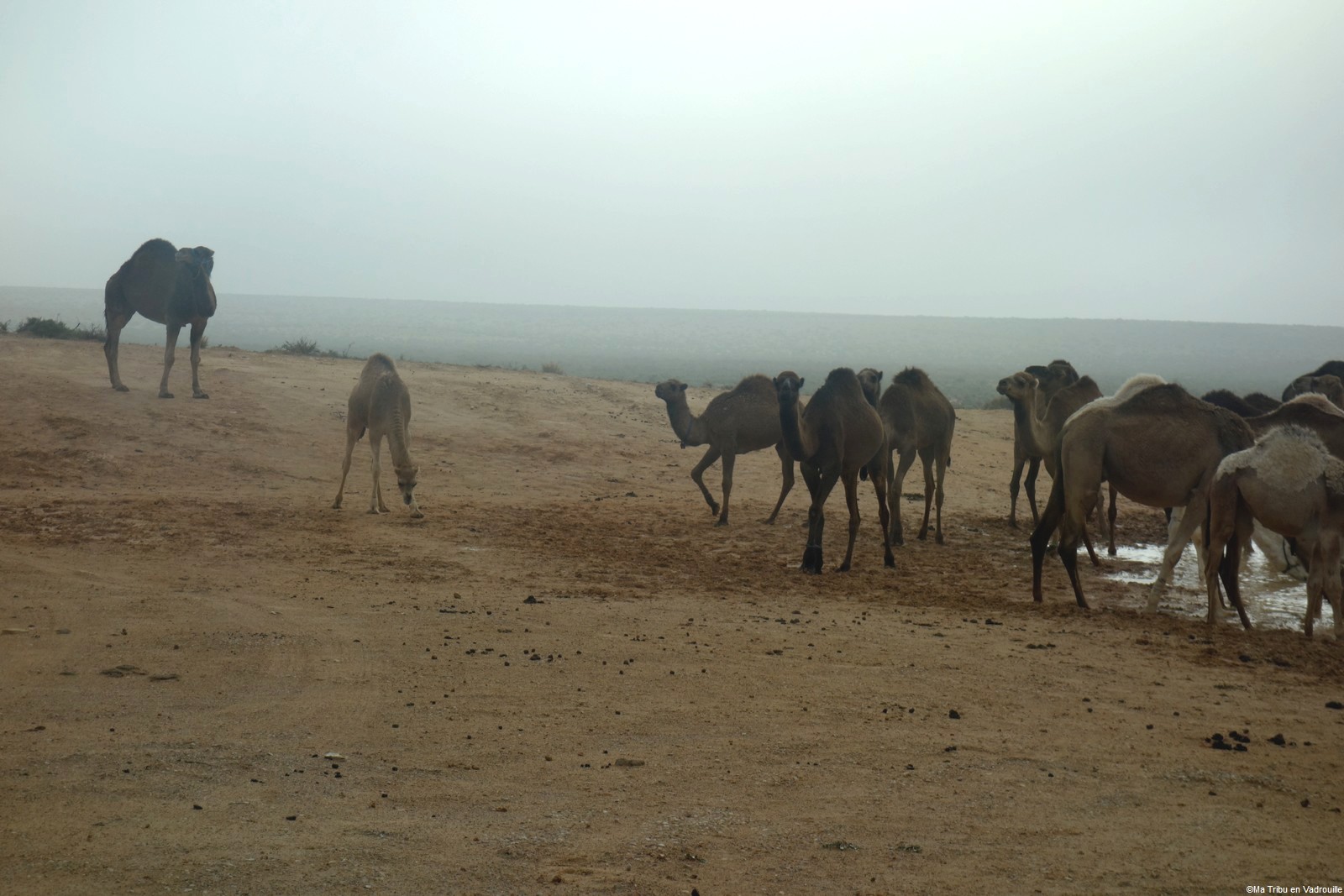 Mais il fait super froid en cette fin de mois de novembre, donc nous repartons assez vite. Un peu plus loin, nous observons un troupeau de dromadaires. Nous restons à l’intérieur du 4×4, mais nous approchons au plus près pour les voir boire ! Il y a même des bébés ! Nous sommes aux anges…