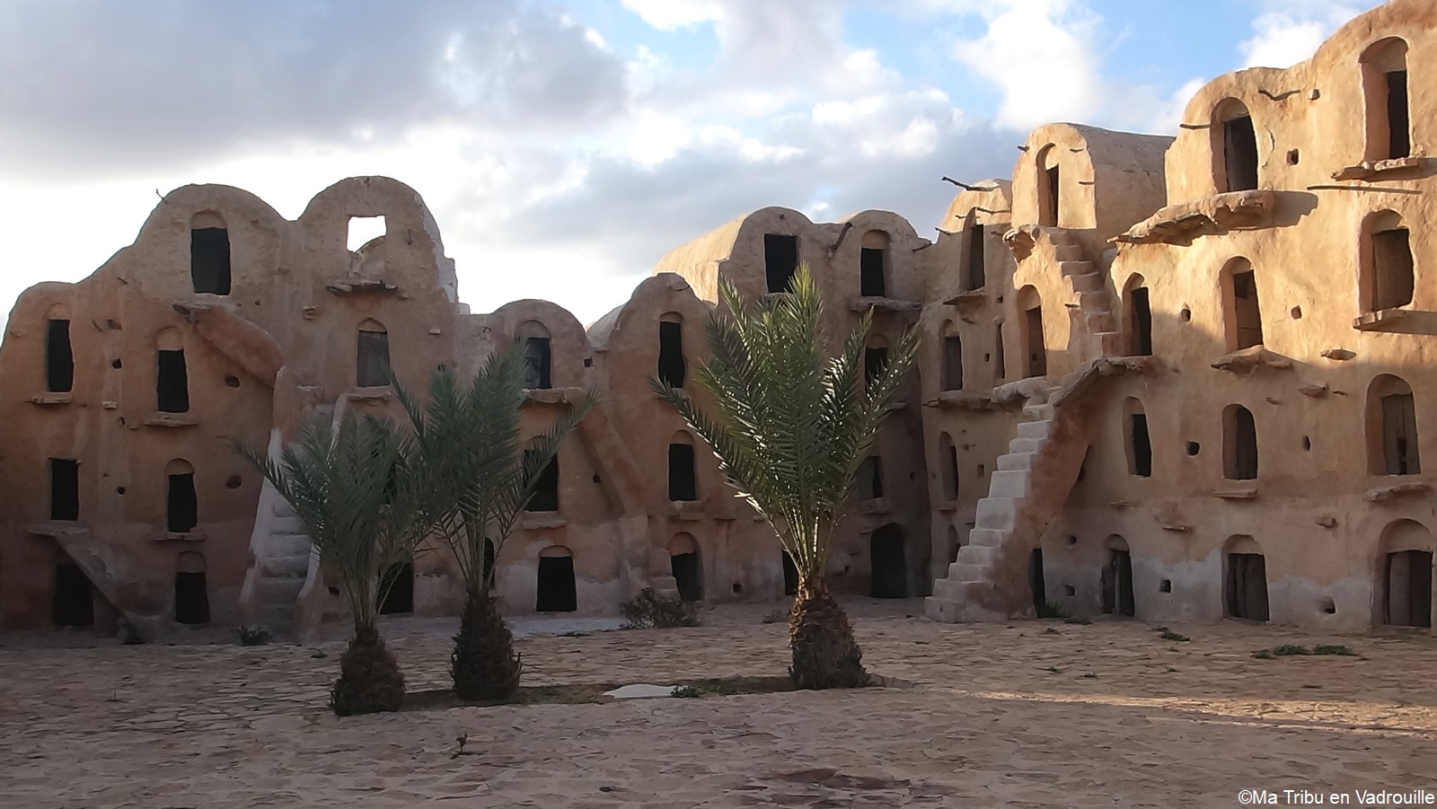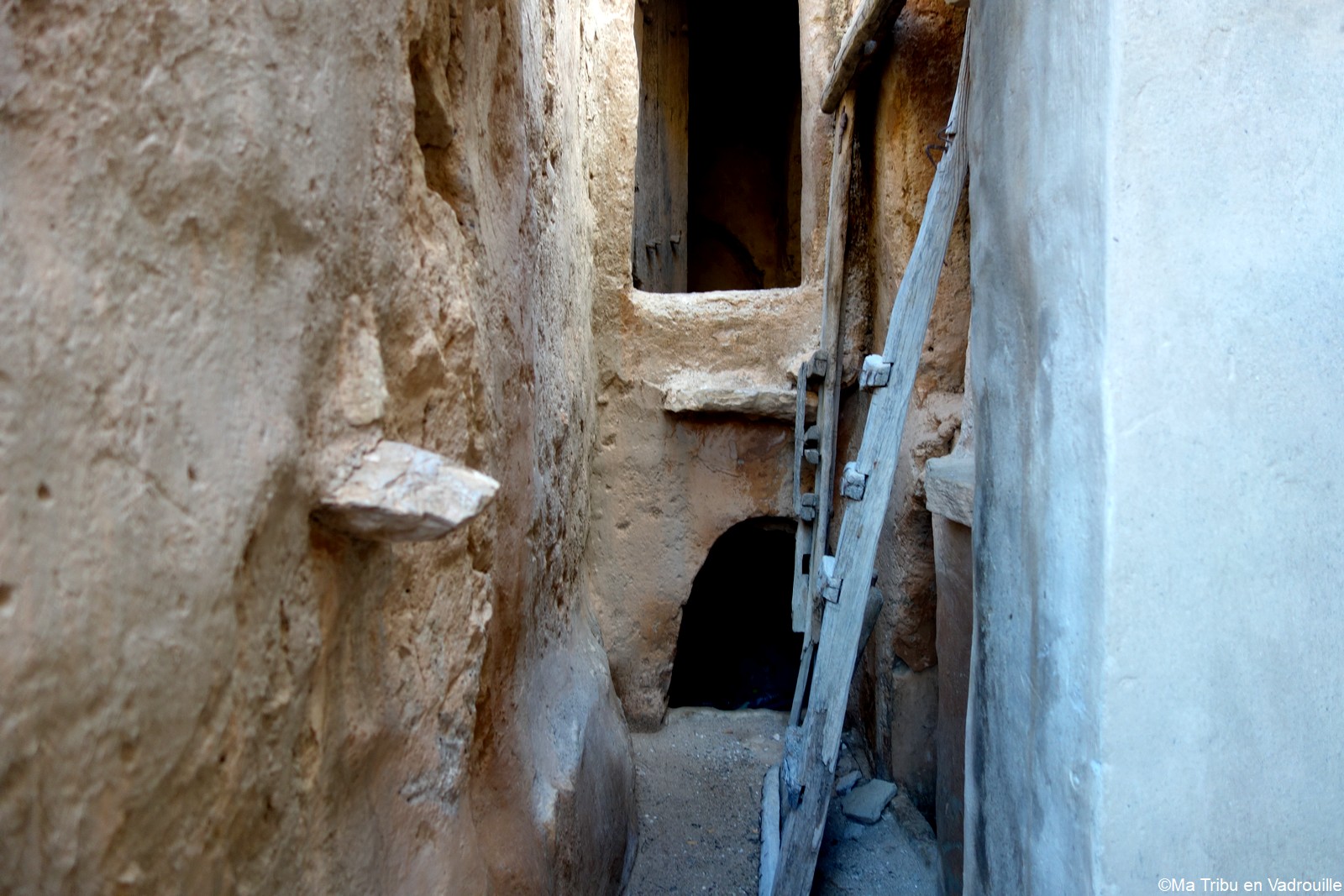 Après la visite de Chenini, nous repartons en 4×4 vers les Ksours, un peu plus loin. Du premier, nous ne verrons rien car de grosses pluies ont détruit la route qui y mène et nous préférons ne pas prendre de risques. Il faut dire que quelques jours auparavant, de grosses pluies ont tout abîmés par ici. Mais le second Ksar, Ouled Soltane, est facilement accessible. Un Ksar (Ksour au pluriel) est un grenier où les tribus berbères stockaient leur nourriture. L’architecture est étonnante et nous fascine malgré la fatigue de la journée. Nous finissons par rentrer à Chenini pour passer notre première nuit dans une maison troglodyte !