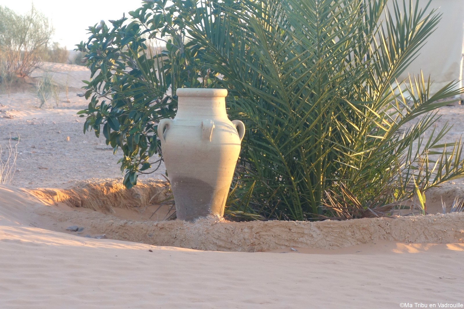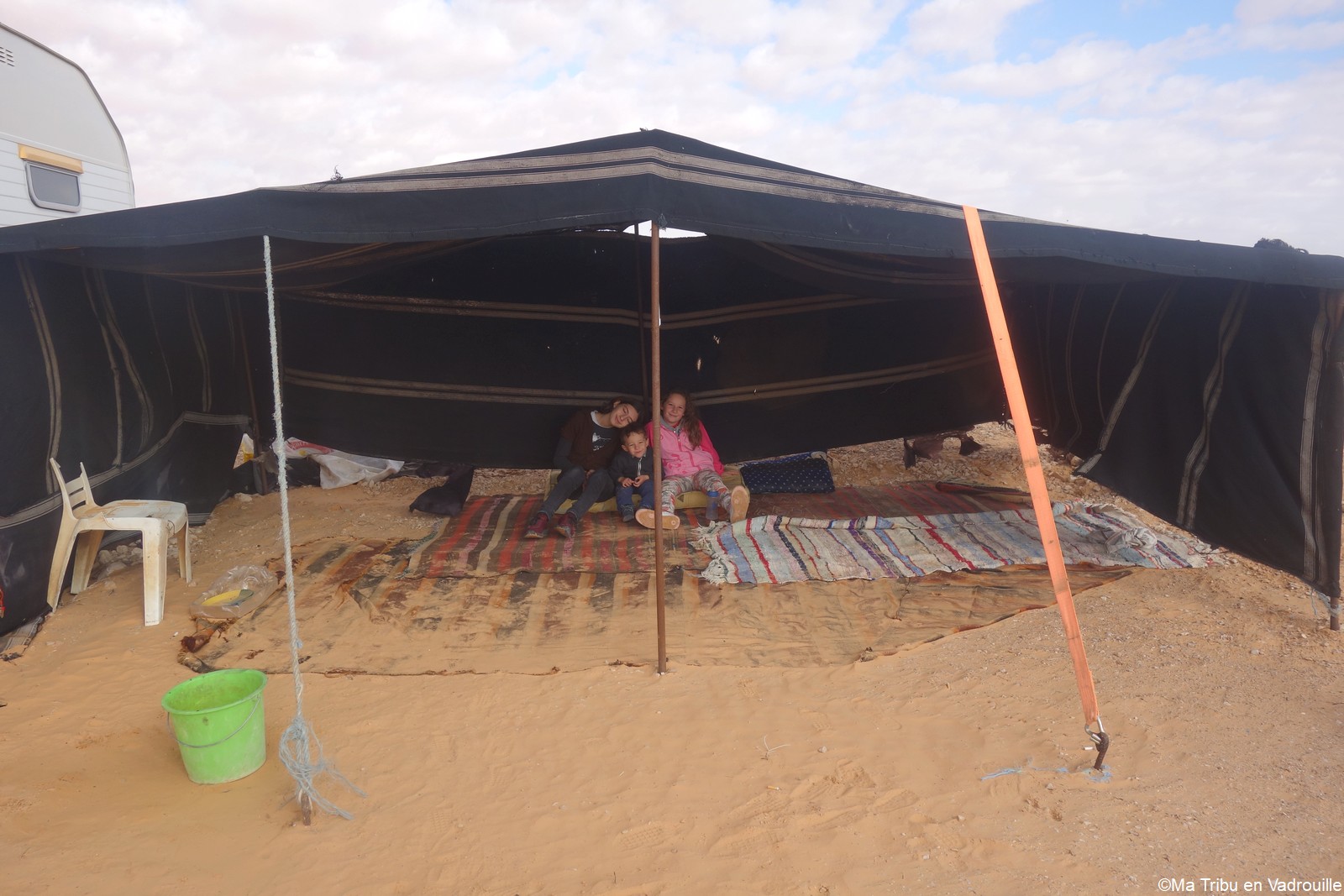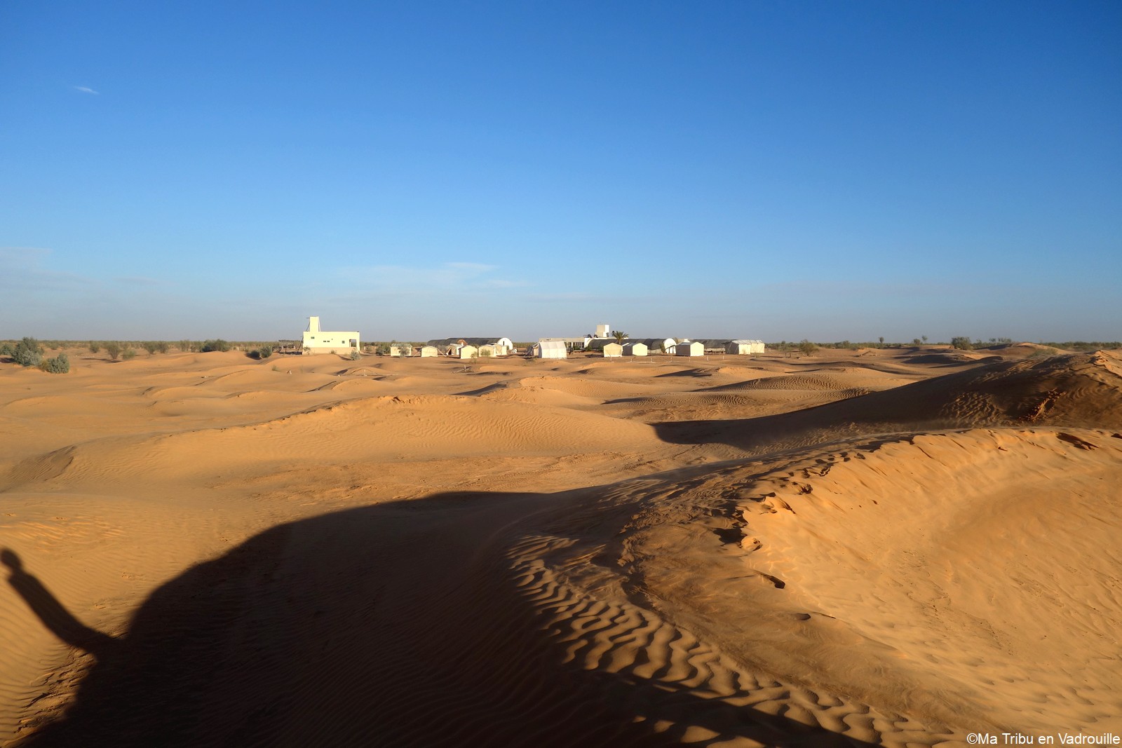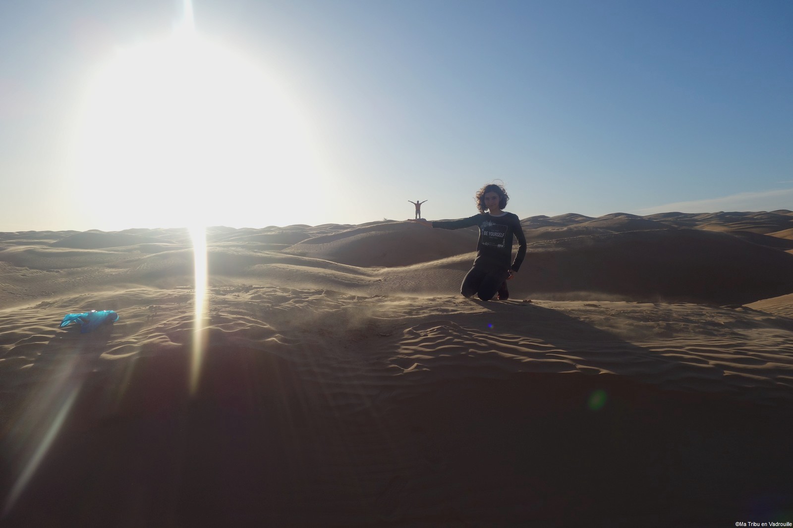 En fin d’après-midi, nous arrivons enfin au campement, niché dans les dunes du désert tunisien. Nous partons de suite explorer les dunes, en essayant d’aller le plus loin possible ! Des montées, des descentes… il y a de quoi s’amuser pour les enfants ! Nael s’amuse dans le bac à sable géant et naturel.