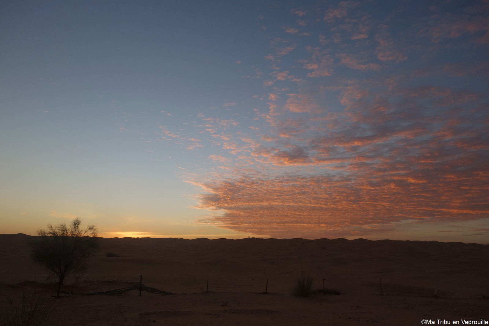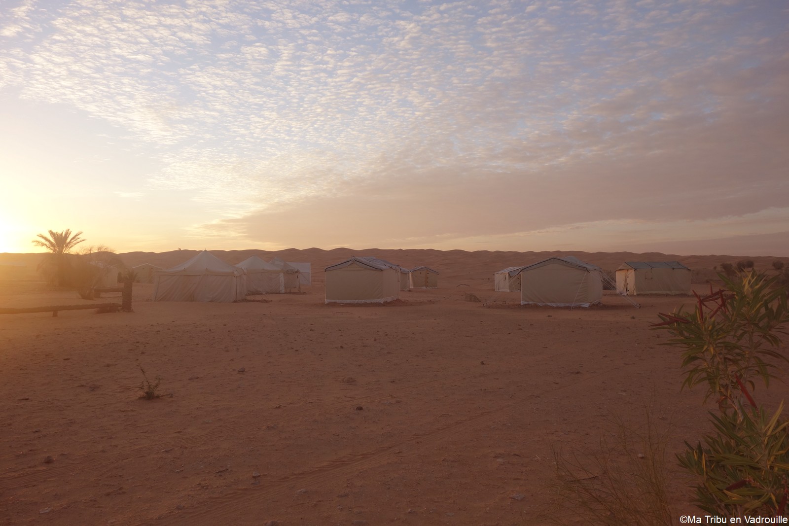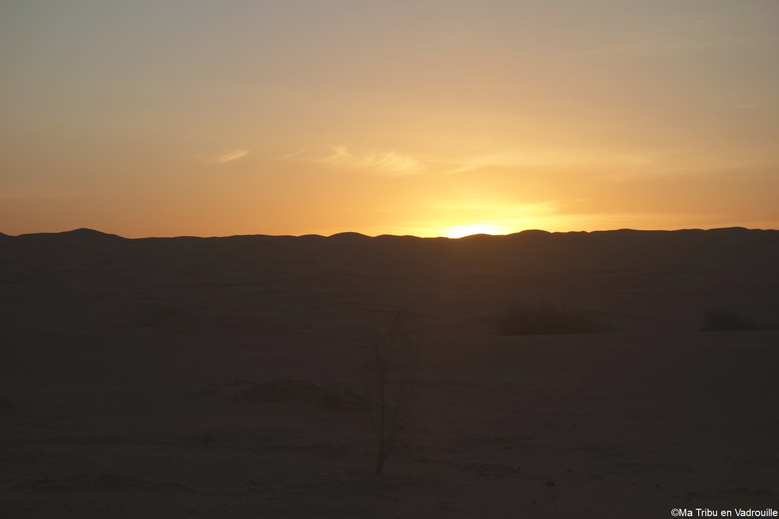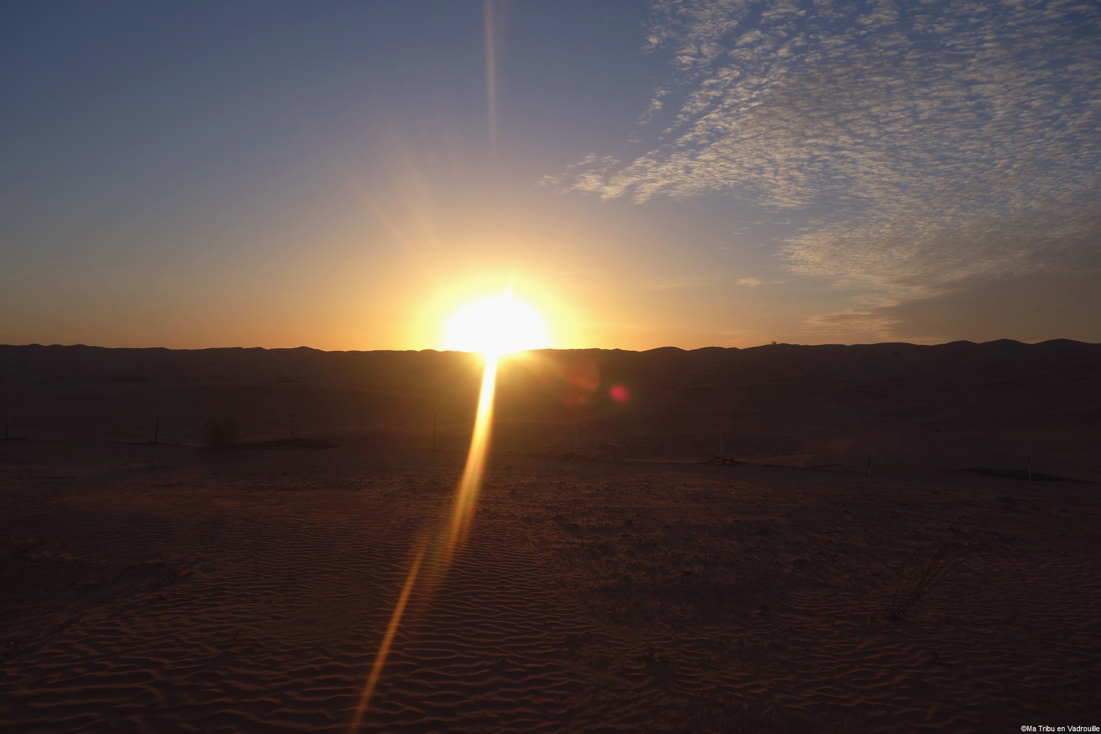 Réveillée la première, à l’aube, je m’empresse d’aller faire des photos du lever de soleil. La lumière sur les dunes est superbe ! Inès, puis les autres, me rejoignent rapidement sur le sable. Nous restons tous les cinq un long moment à observer l’immensité du désert et du ciel.