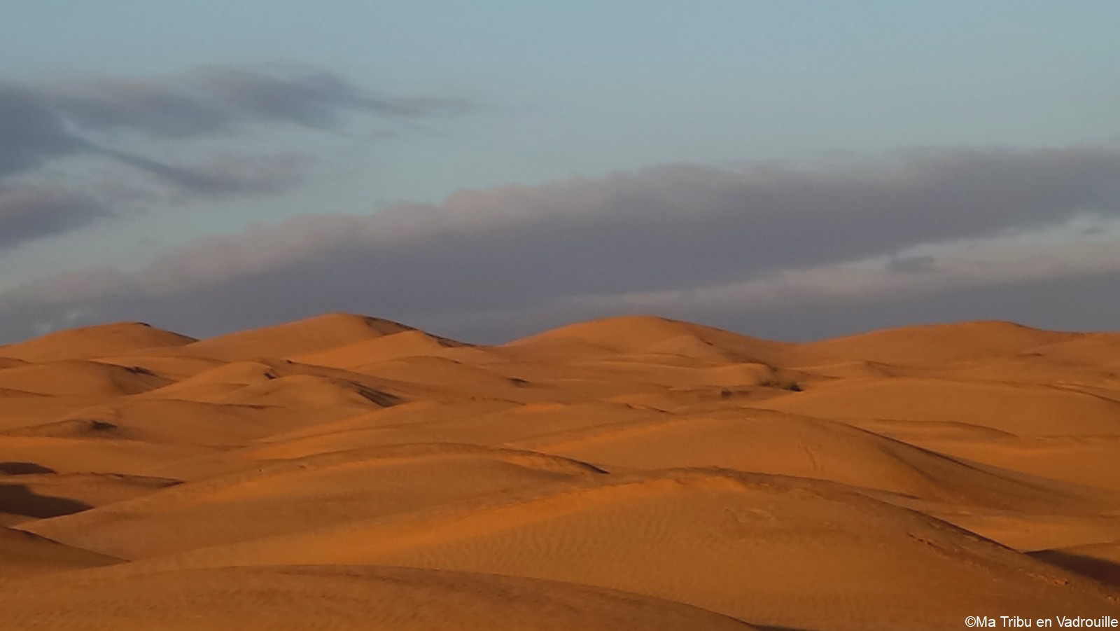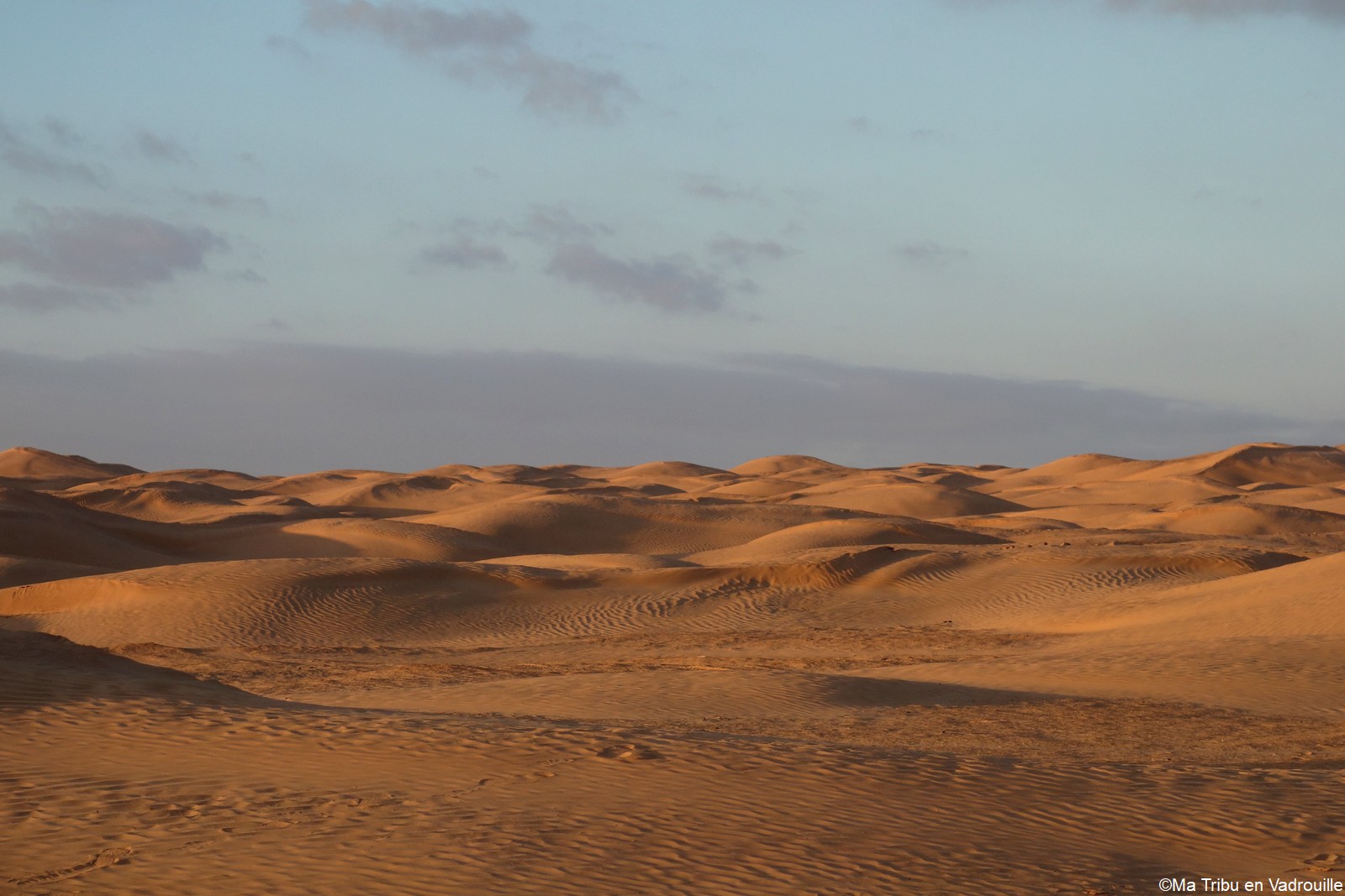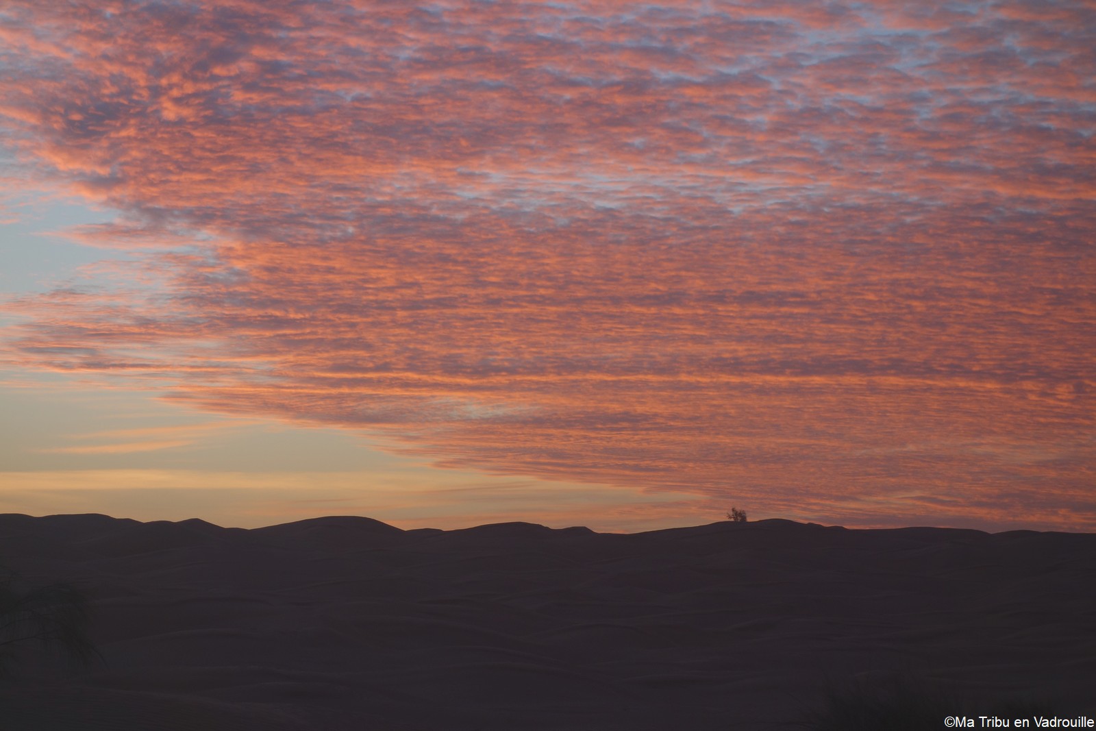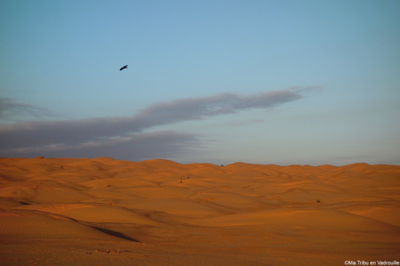 Réveillée la première, à l’aube, je m’empresse d’aller faire des photos du lever de soleil. La lumière sur les dunes est superbe ! Inès, puis les autres, me rejoignent rapidement sur le sable. Nous restons tous les cinq un long moment à observer l’immensité du désert et du ciel.