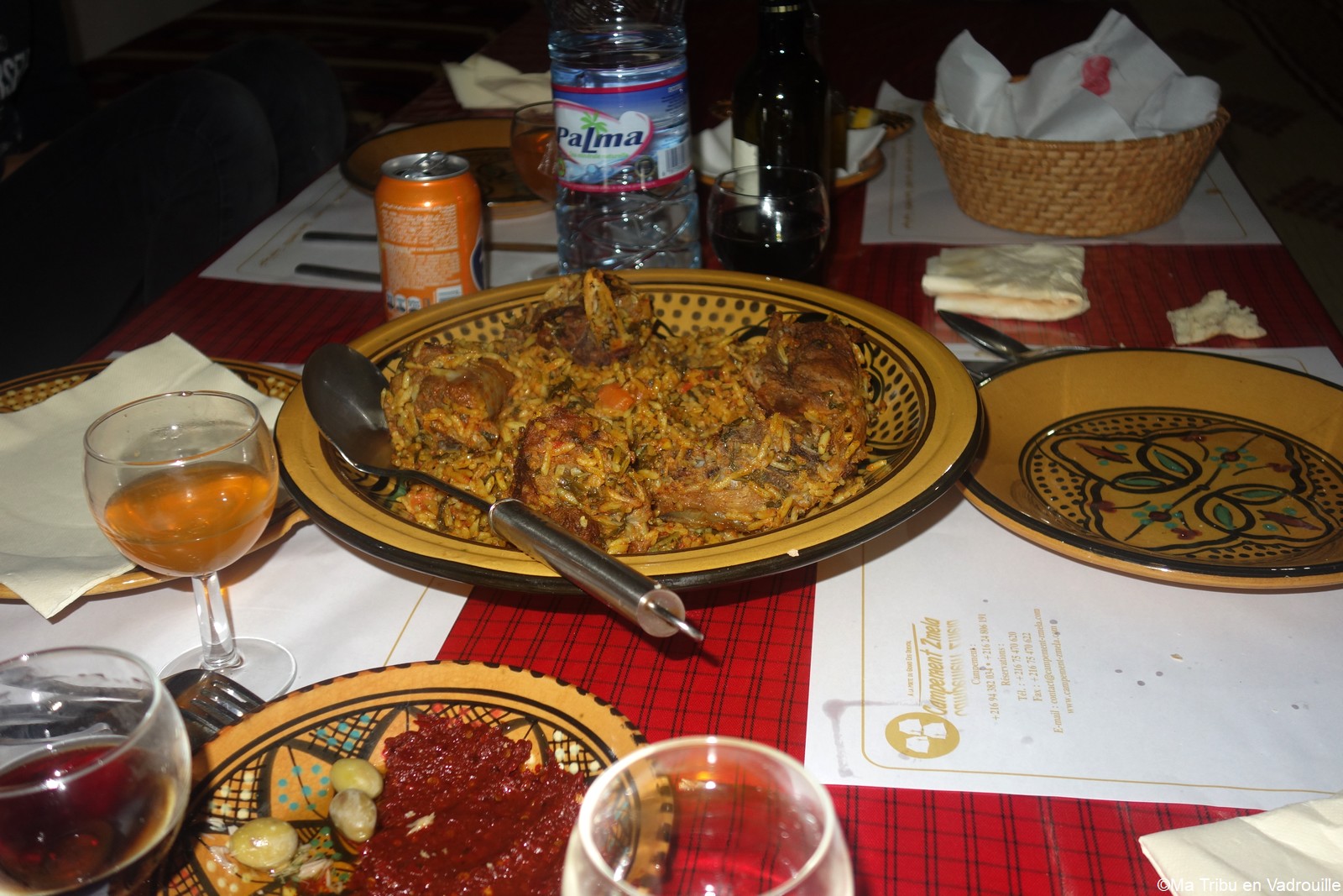 À la tombée de la nuit, nous rejoignons le centre du campement. Nous sommes la seule famille alors les enfants ont du succès ! Quelques jeunes touristes tunisiens sont présents et s’amusent à jouer de la musique sur des darboukas.