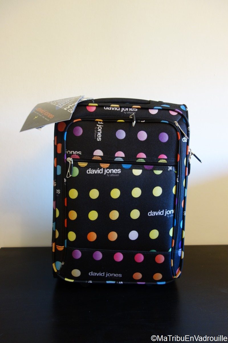 Nous avons acheté tous nos bagages sur le site en ligne Bleu Cerise. Lorsque je les ai contacté pour leur raconter notre projet et leur dire que nous avions 5 bagages à commander, ils nous ont gentiment offert une réduction. Mais si nous nous sommes dirigés vers eux, c’est surtout pour leurs prix très attractifs. Ils proposent toutes sortes de bagages (ça va du sac scolaire à la valise rigide en passant par les sacs à mains) et d’accessoires, dans des tarifs imbattables. Je me suis même laissée tenter par un sac à main et une pochette à 5 euros pour Sara. Ils proposent de nombreuses marques comme Samsonite, Little Marcel, Lee Cooper, etc… Nous avons préféré choisir la marque australienne « David Jones » pour nos bagages. N’hésitez pas à les contacter, ils sont très réactifs et très sympas au téléphone ! Et pour l’info, nous n’avons rien à y gagner 😉