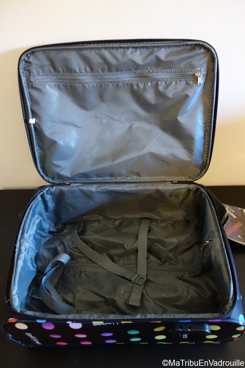Notre choix : Pour chacune de nos filles, nous avons choisi une valise souple au format « bagage cabine », pour pouvoir les embarquer avec nous dans l’avion. Elles ont des compartiments, 2 roulettes intégrées et la fameuse serrure TSA. Sara et Inès y transportent leur ordinateur et leurs affaires personnelles.