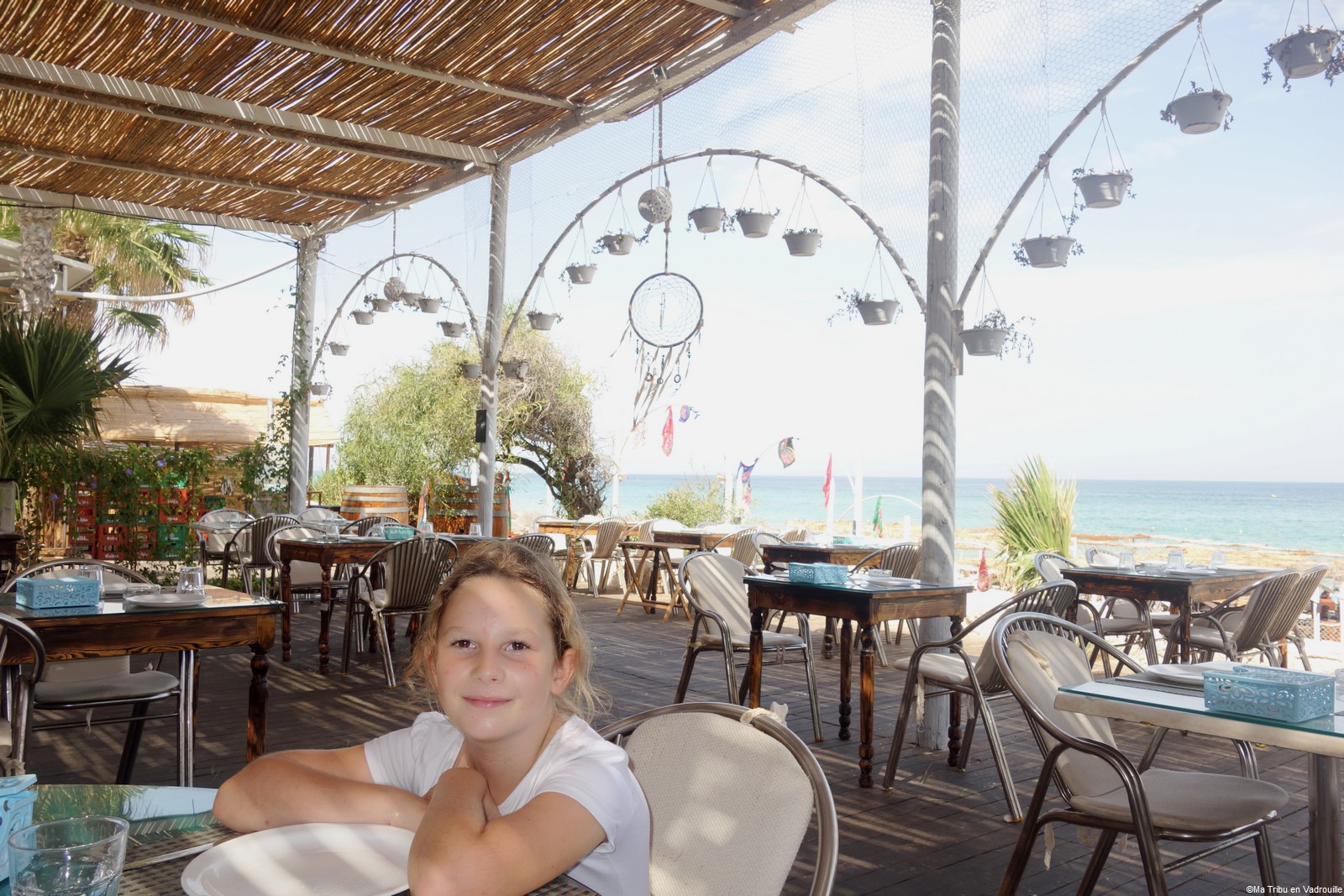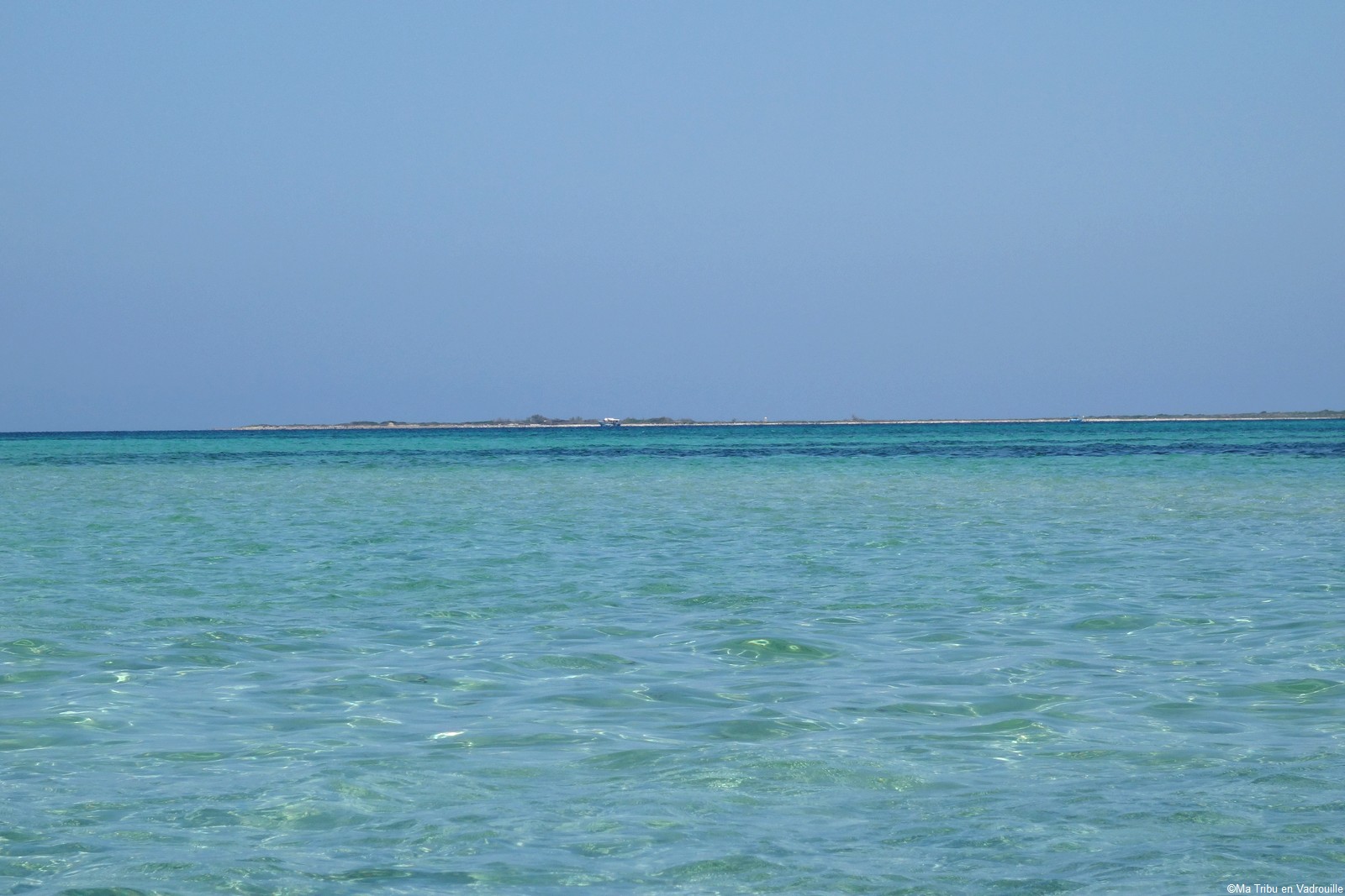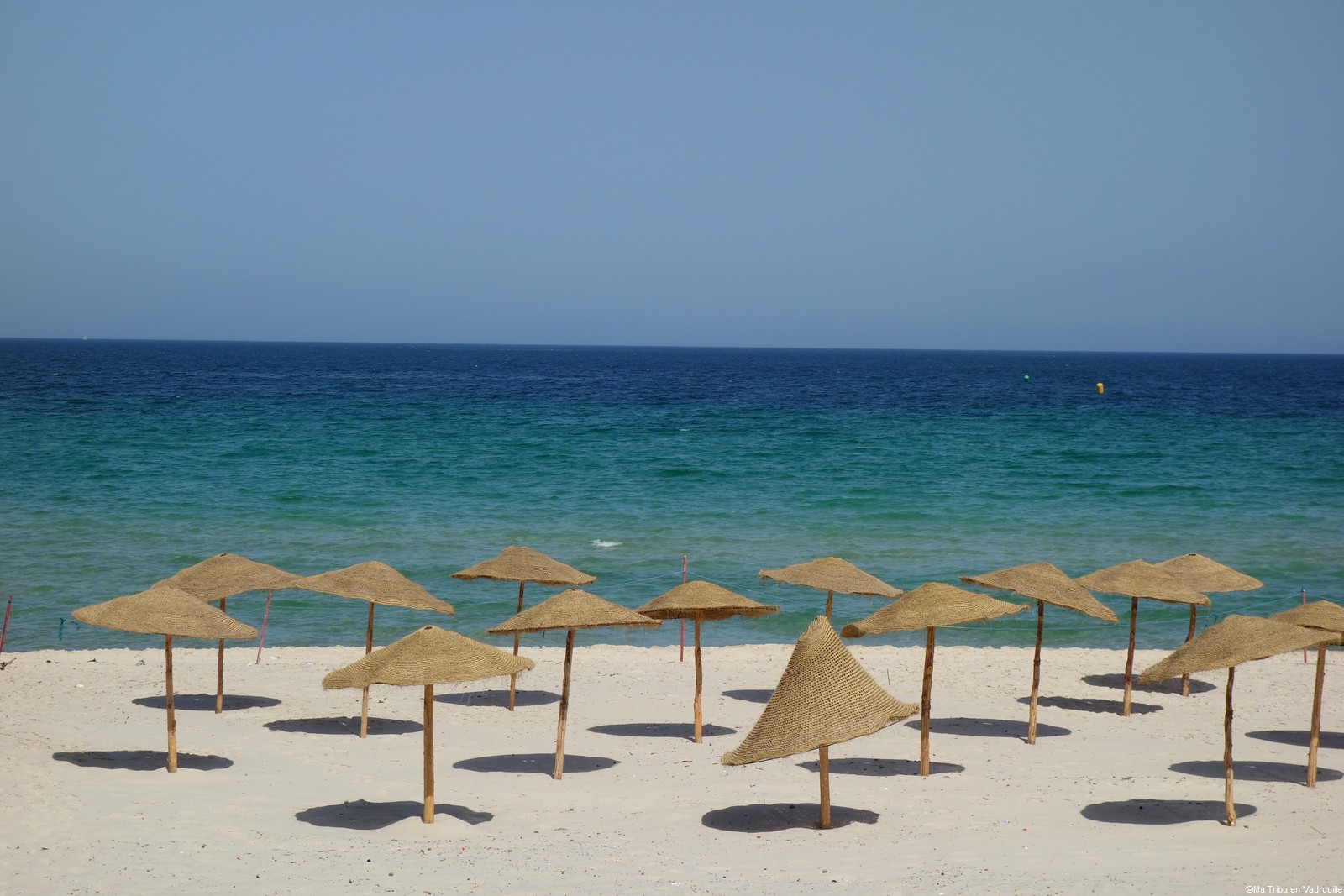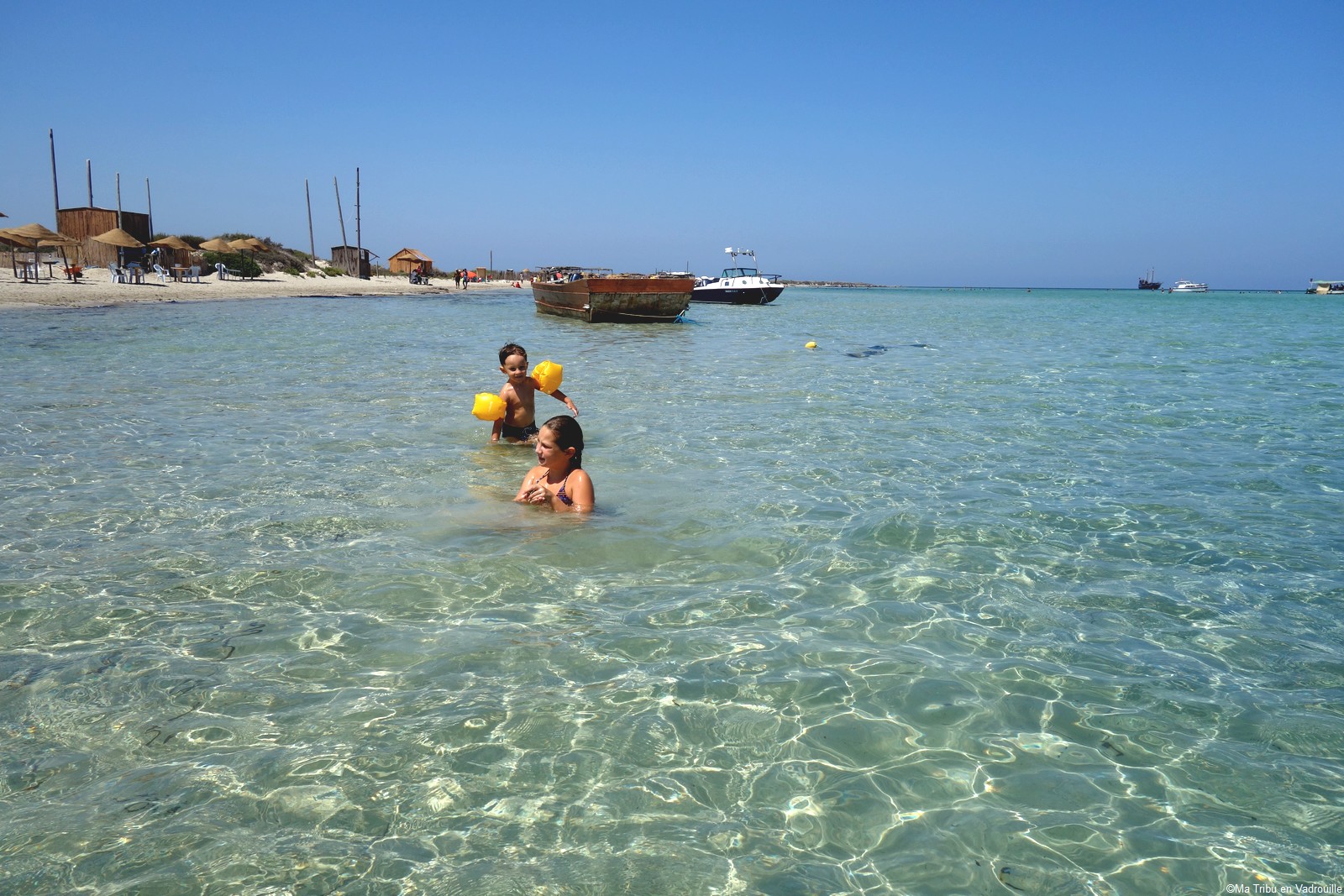 Par contre, nous sommes allés à Kuriat, l’archipel de 2 îles situé au large de Monastir. Sur la plus grande île, vous trouverez des parasols, des barbecues, des tables et des chaises à même le sable. C’est certainement la plus belle plage que nous ayons vue jusqu’à présent ! Le nombre de touristes étant limité chaque jour, la pollution y est donc moindre… Mais le plus beau à Kuriat, c’est l’eau transparente et turquoise ! Magnifique ! Nous y avons passé une belle journée en famille.