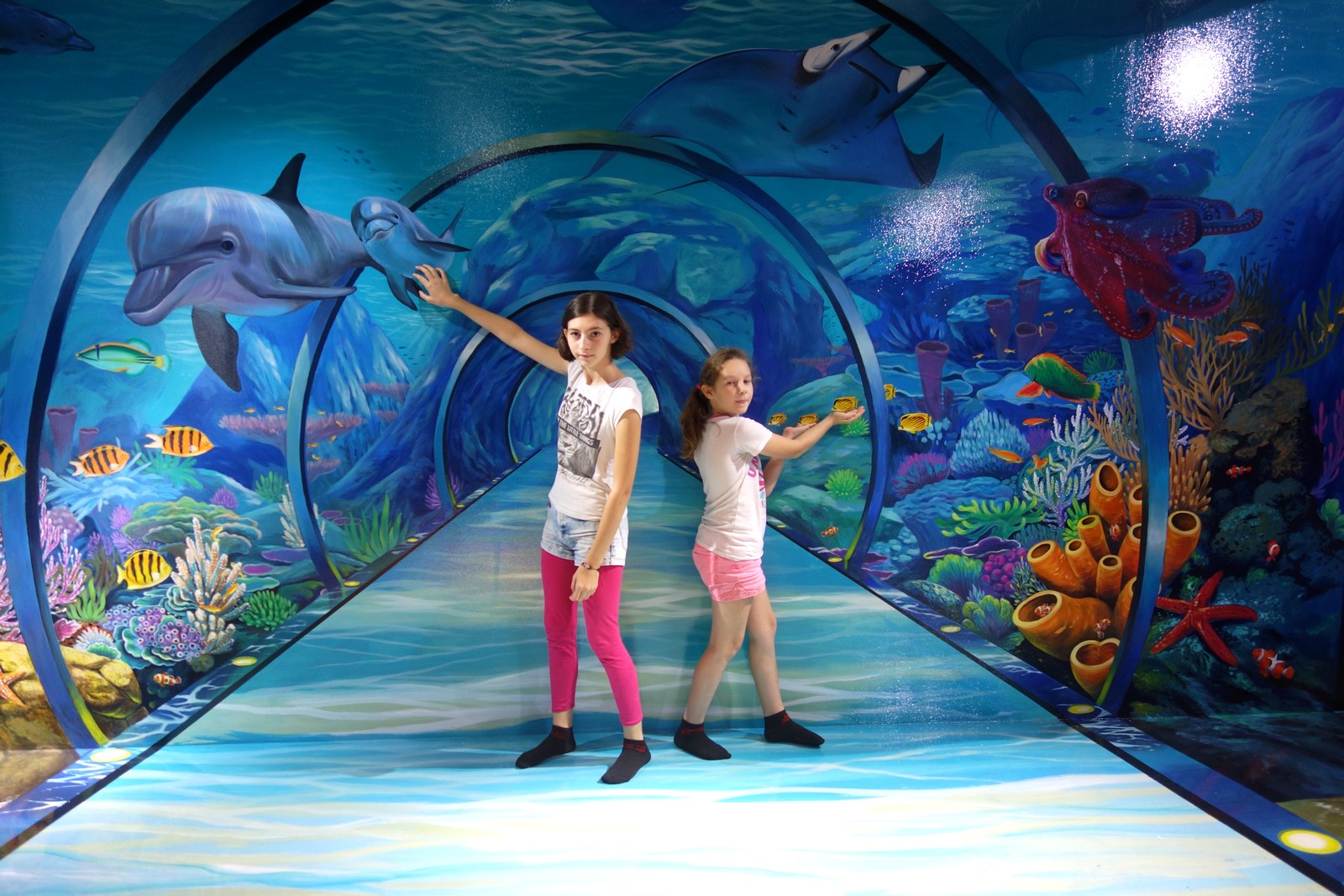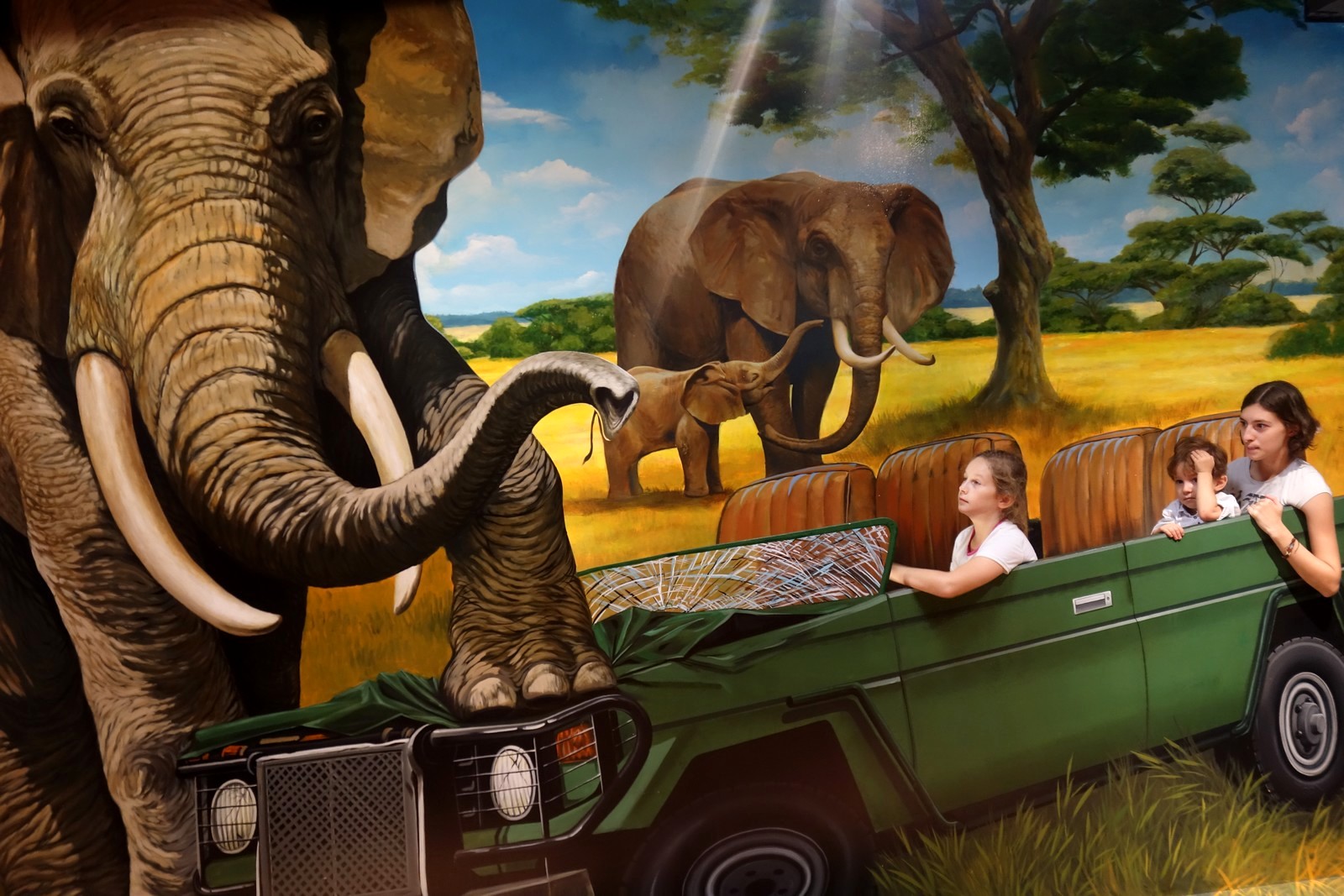 Visiter la Tunisie en famille, c’est aussi s’amuser, non ? Il y a très peu de parcs d’attractions dans le pays. Alors quand le musée 3D de Sousse a ouvert ses portes, nous y sommes vite allés ! C’est une expérience incroyable qui a beaucoup plu aux enfants. À l’entrée, on vous demande de vous déchausser et une hôtesse vous donne une paire de chaussette noire. C’est donc en chaussettes que nous parcourons les différents tableaux. Répartis sur plusieurs étages, ils sont tous plus beaux les uns que les autres !